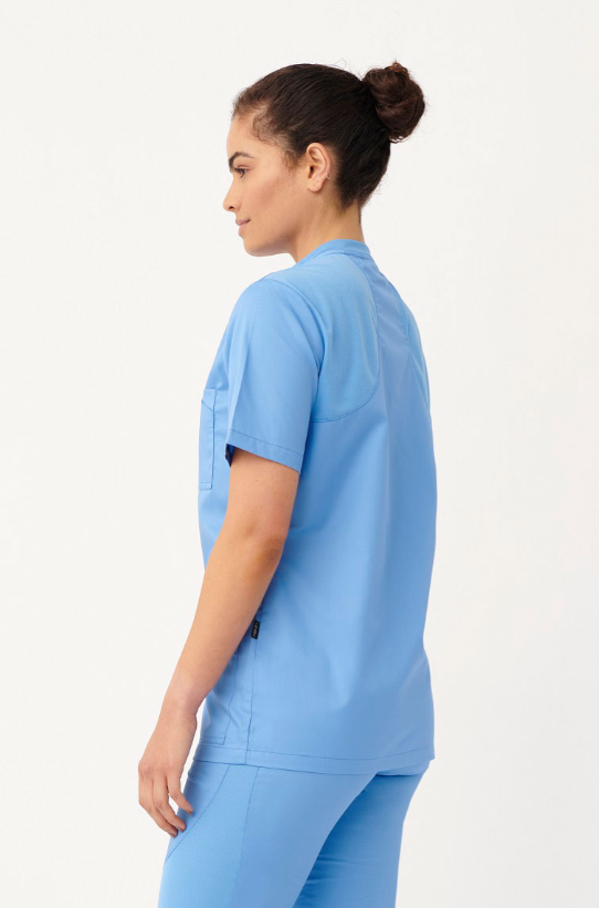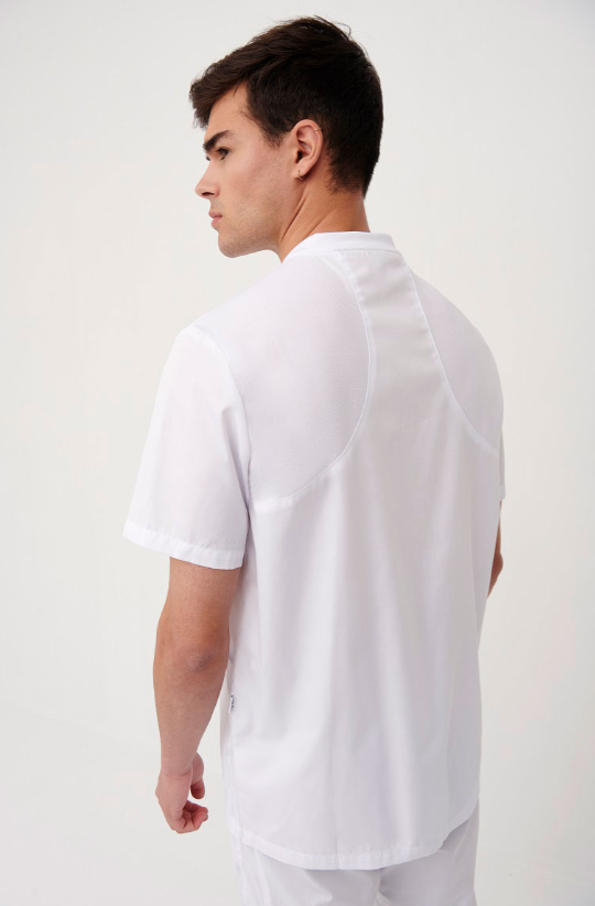 Un clásico con un diseño renovado. Tres tipos de tejido con la comodidad del profesional sanitario como único objetivo. El rib para una sensación de suavidad y elasticidad en el cuello, la malla mejorando la elasticidad y transpirabilidad en espalda y sisa, y un tejido más fino que otras prendas de sarga pensado para optimizar la sensación térmica.