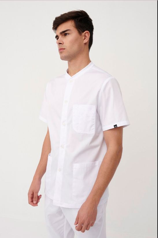 Un modelo pensado para ofrecer más presencia manteniendo un diseño más clásico. Más corta que las habituales batas sanitarias, las mangas sin puño y el cierre oculto como elementos que otorgan sobriedad y elegancia a la prenda. Confeccionada con una combinación de tejidos, la presencia de rib en zonas estratégicas ofrece elasticidad y mejora la libertad de movimientos.