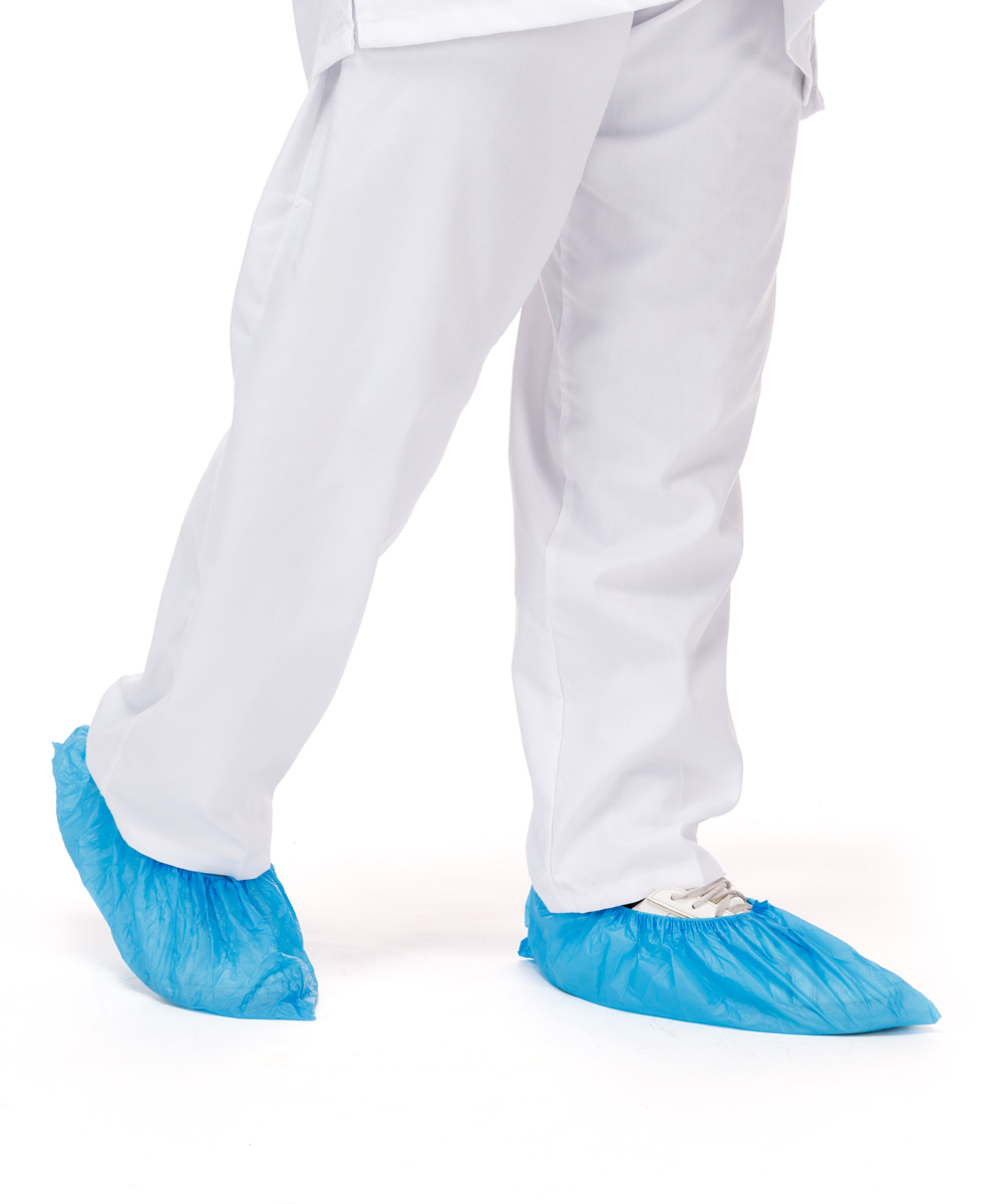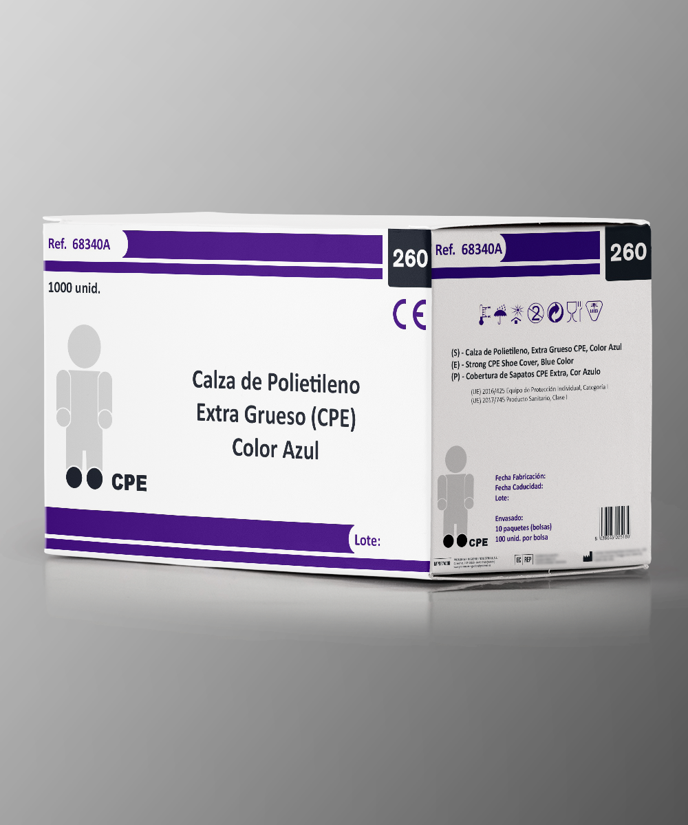 Calza fabricada en polietileno rugoso (CPE) de mayor resistencia, con ajuste mediante goma elástica a la altura del tobillo.