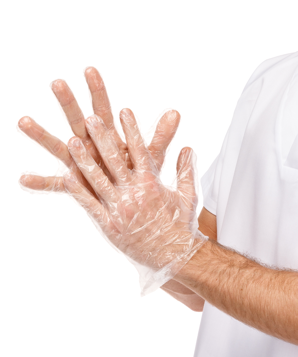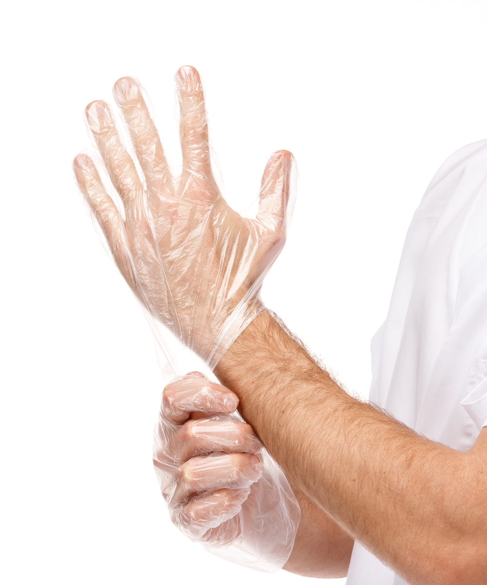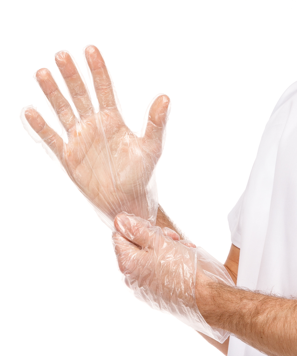 Guante e Polietileno (HDPE), ambidiestro. Con superficie exterior gofrada para facilitar el uso, e interior lisa para facilitar el engarzado.