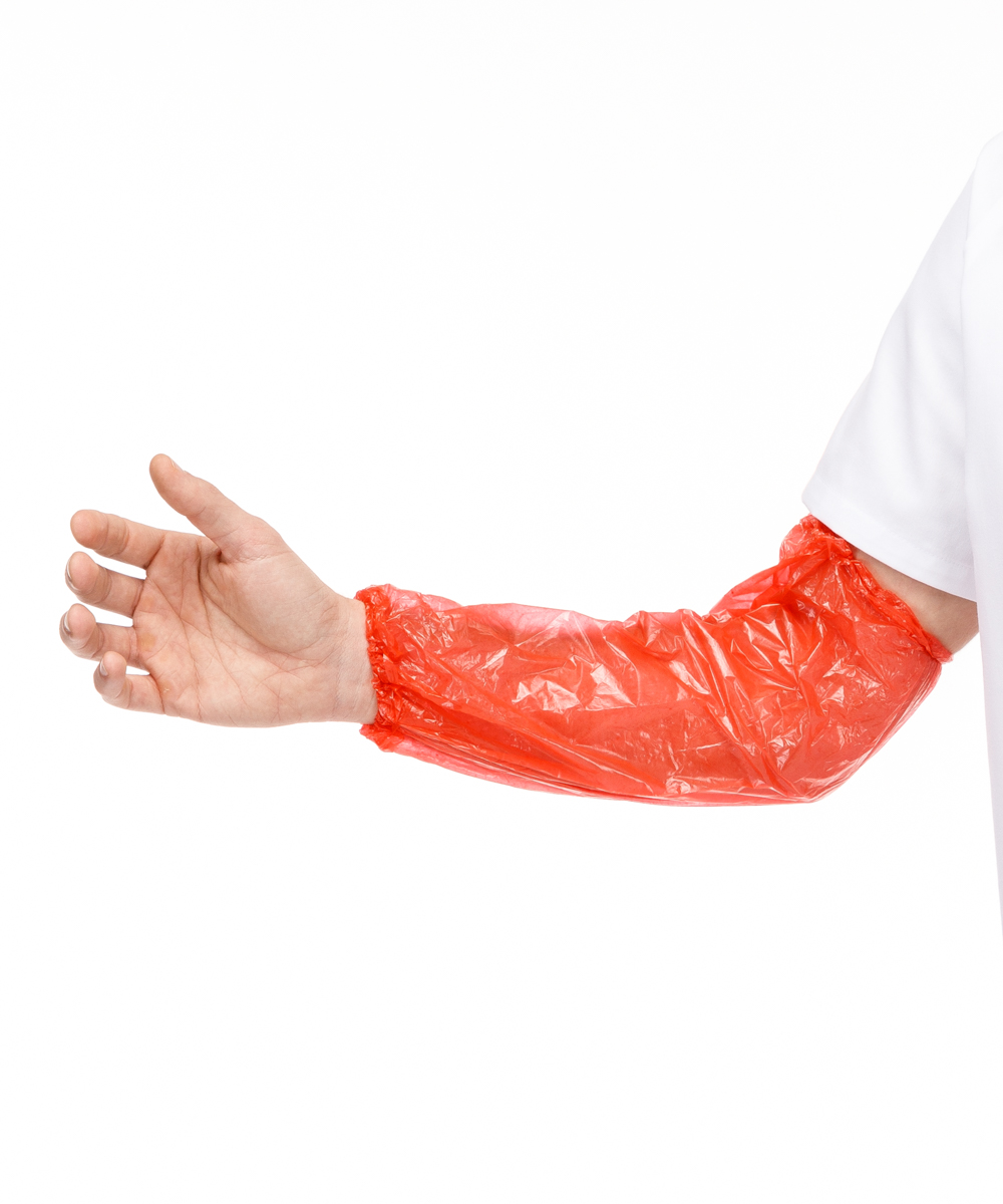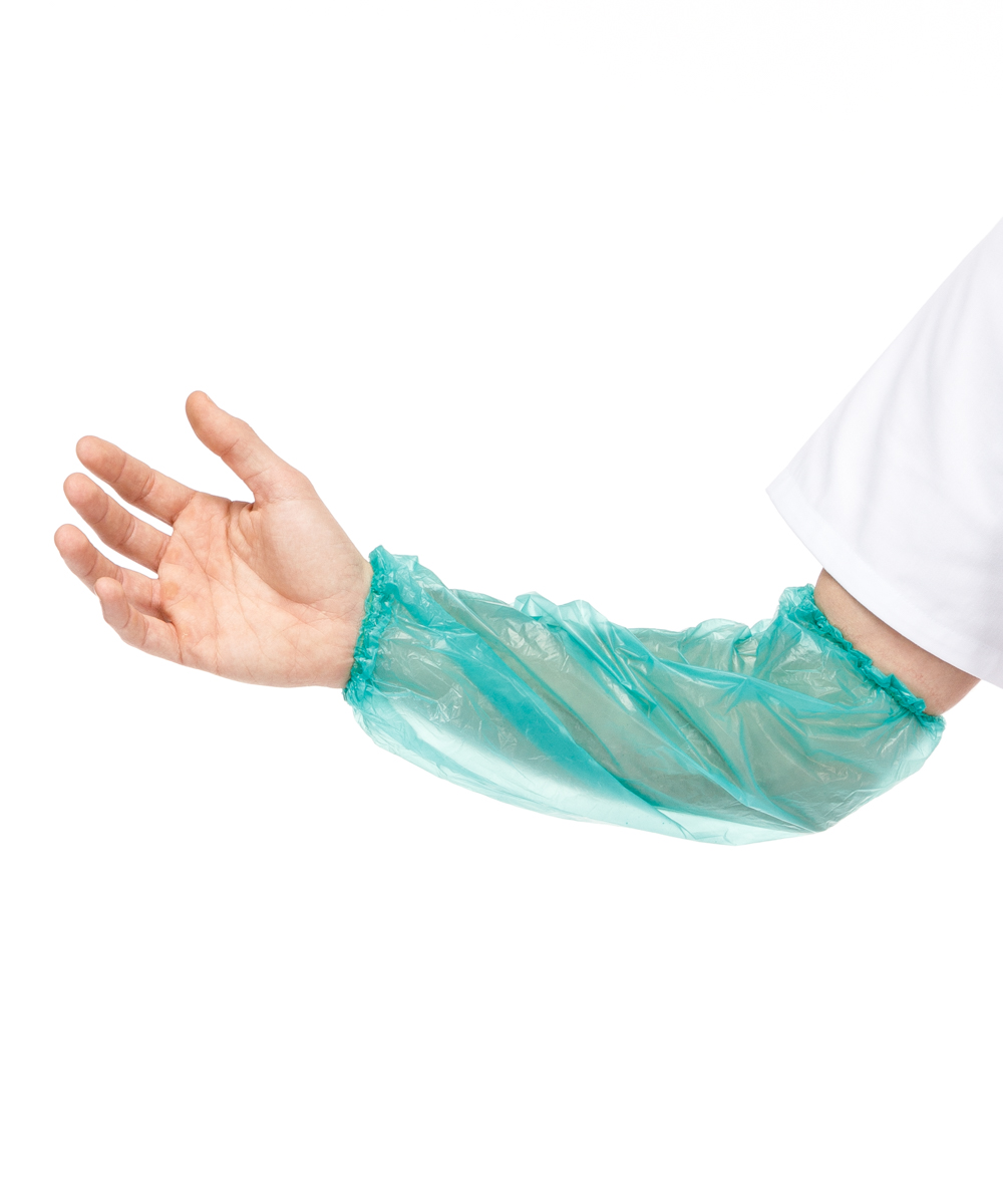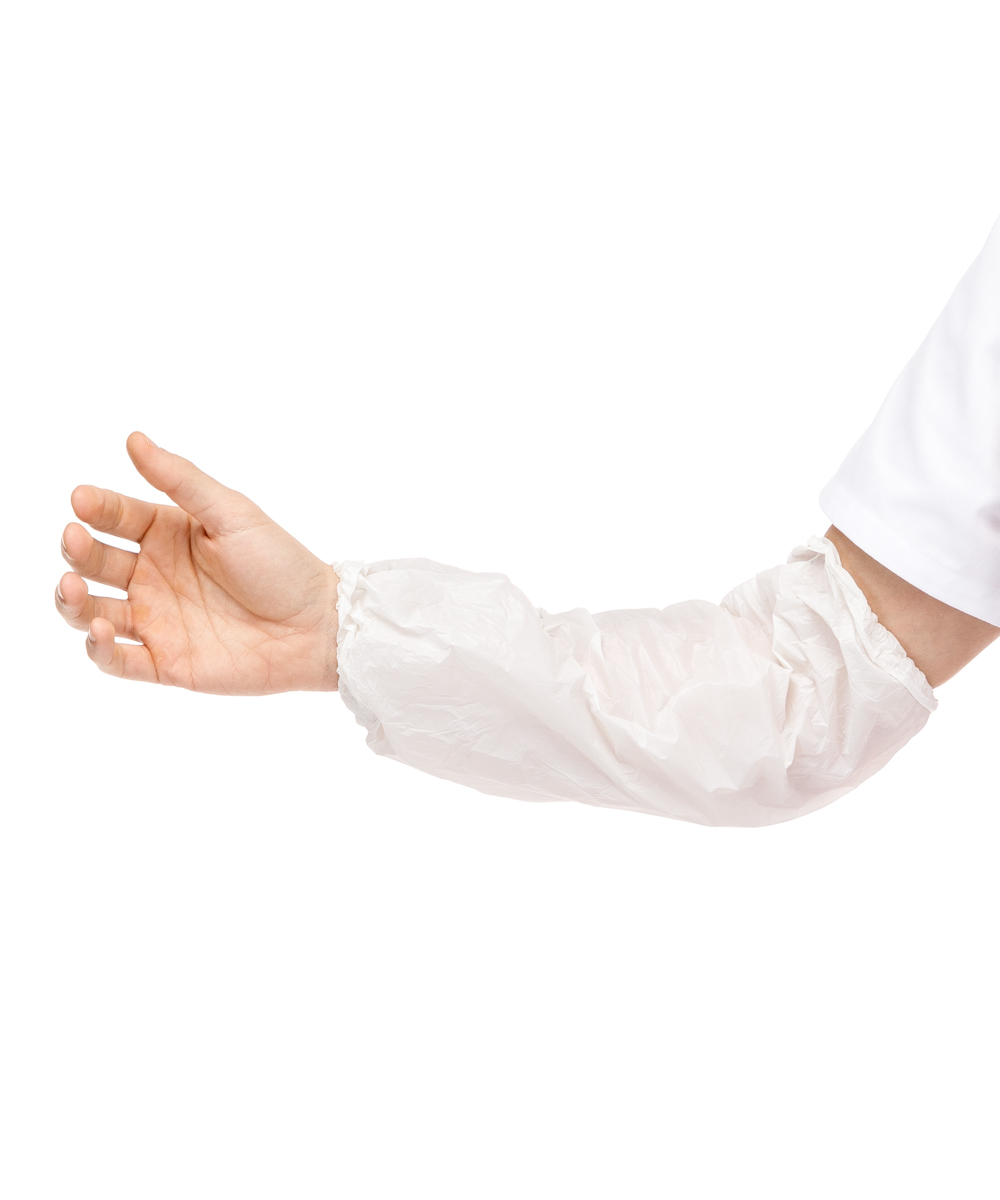 Manguito fabricado en Polietileno(LDPE) de 0.02mm. Con elásticos en ambos laterales y sellado manualmente.