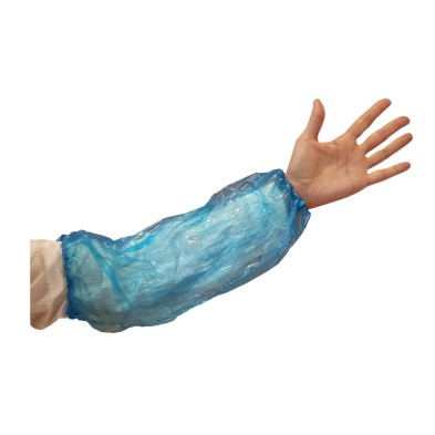 Principales características Manguito Polietileno desechable. Para riesgos mínimos y de un solo uso. Con elásticos en extremos. Alta calidad y resistencia. Especialmente indicado para Industria alimentaria. Color disponible: Azul. Grosor: 0,04 mm. Medidas: 40x20 cm. Venta en: Paquete (100 unidades). Caja (1000 unidades). Talla: única.
