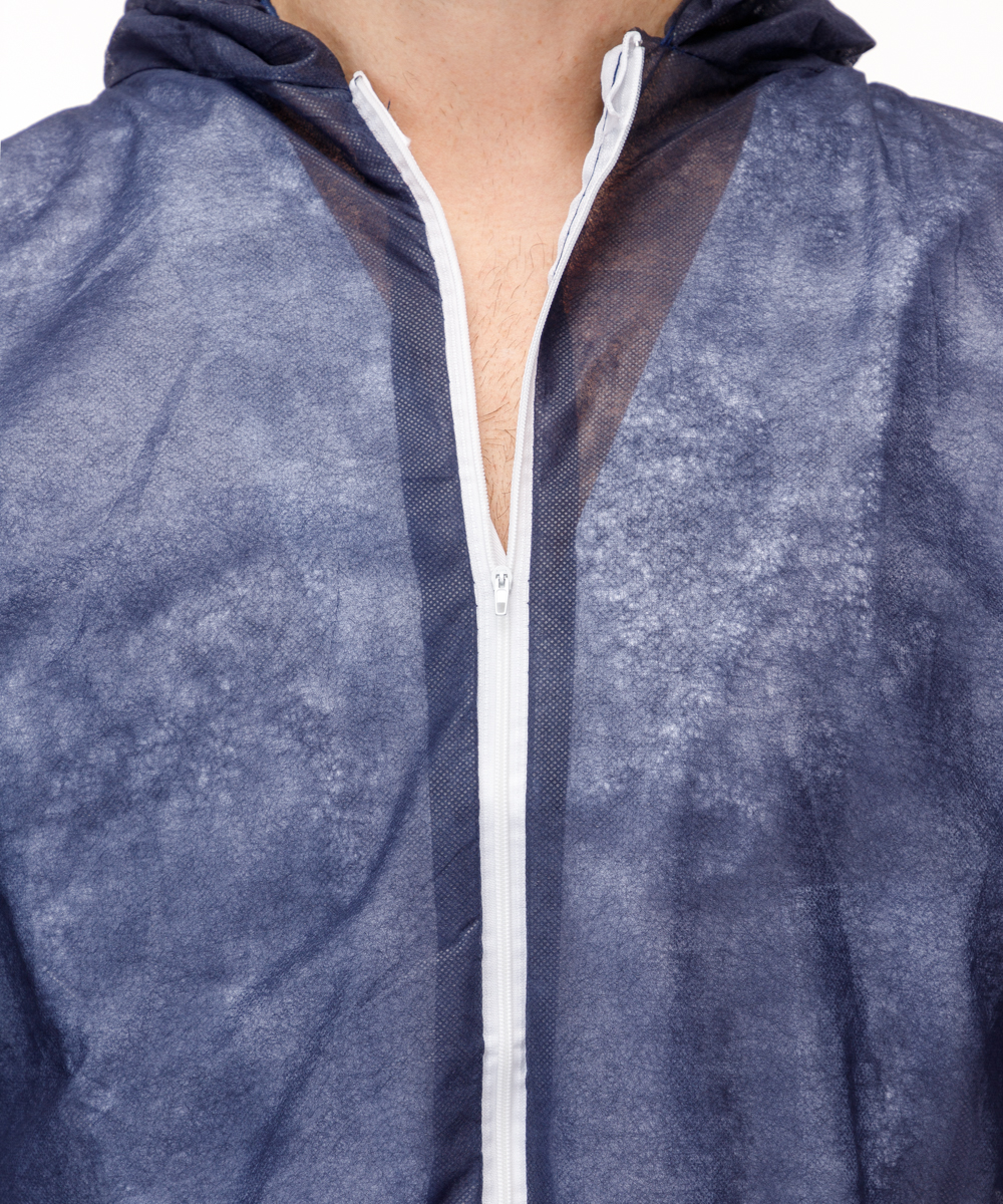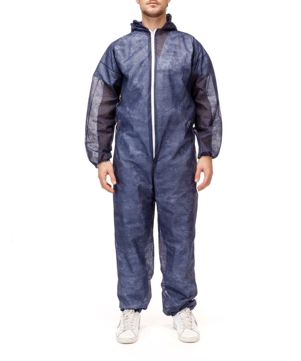 Mono Buzo Polipropileno de 40 grs, con cierre cremallera, capucha y elásticos en muñecas y tobillos.